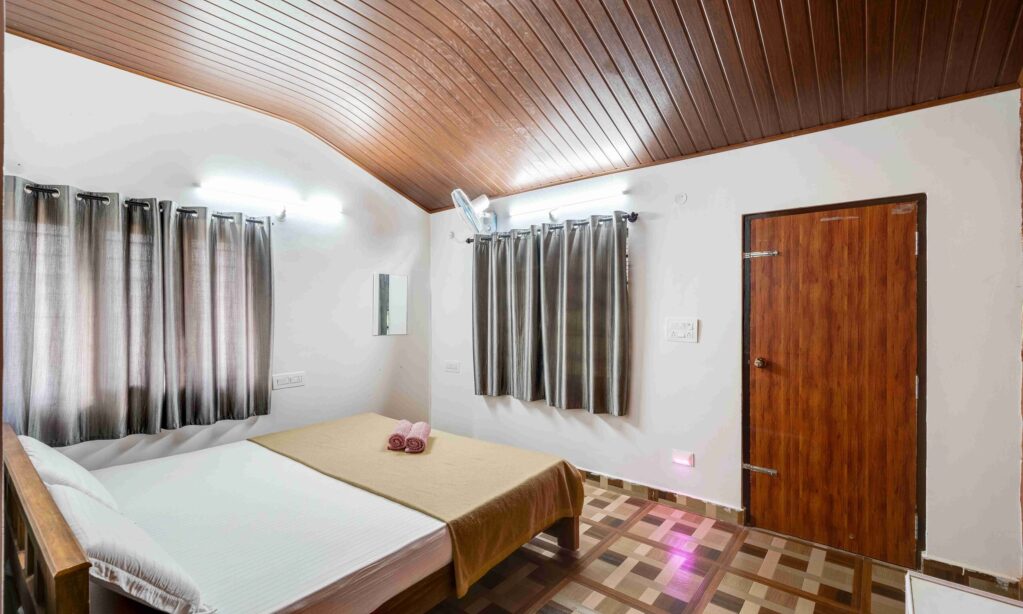 Our Standard Room offers a cozy and comfortable retreat, perfect for a Our Standard Room features a plush king-size bed, an attached bathroom with 24/7 hot water, and a private porch overlooking the lush plantation. It accommodates two guests, with an extra bed available for a third person upon request.